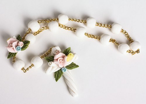 Christening Baby's First Rosary with Linen Bag and Gift Box - Made in USA by Simply Charming