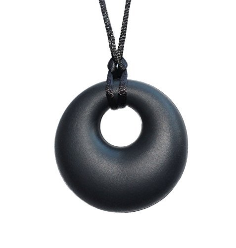 Teething Relief Silicone Pendant Necklace for Mothers - BPA Free, Non Toxic Gum Massager - Drooling Toddler - Happy Baby (Black) by Simply Love