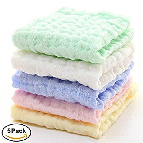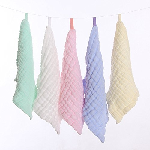 Sincerestore 赤ちゃんタオル 5色フェイスタオル 自然綿タオル ベビーハンカチ 6層ガーゼ 新生児ハンカチ 綿100% 柔らかい肌触り 細菌防止 五枚セット30*30cm