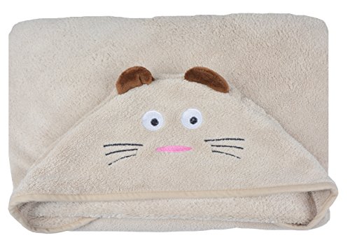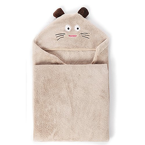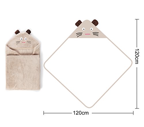 Sinland コーラルベルベットフード付き ベビー バスタオル 動物柄 男女兼用 ライトブラウン 90CM X 90CM
