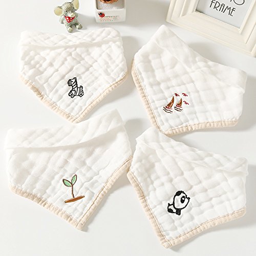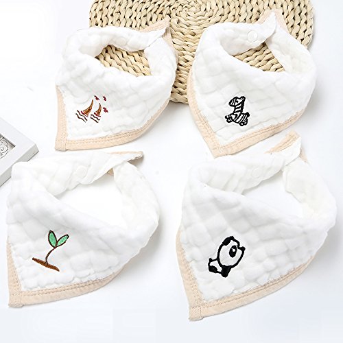 Sinland よだれかけ 三角 ベビー ビブ 綿100% 柔らかい スナップビブ 4枚セット