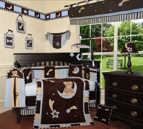SISI Baby Boy Boutique - Blue Bear and Moon 13 PCS Crib Bedding by Sisi