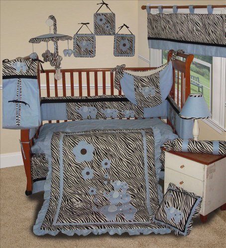 SISI Baby Boy Boutique - Blue Zebra 13 Pc Baby Bedding Nursery Crib Set by Sisi