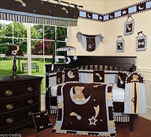 SISI Baby Bedding - Blue Bear and Moon 14 PCS Crib Bedding Including Lamp Shade by Sisi