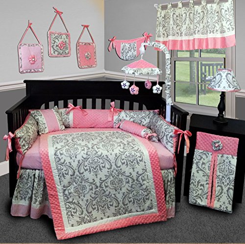 SISI Baby Bedding - Grey Damask 14 PCS Crib Bedding Set incl. Lamp Shade by Sisi