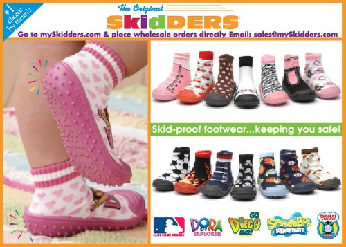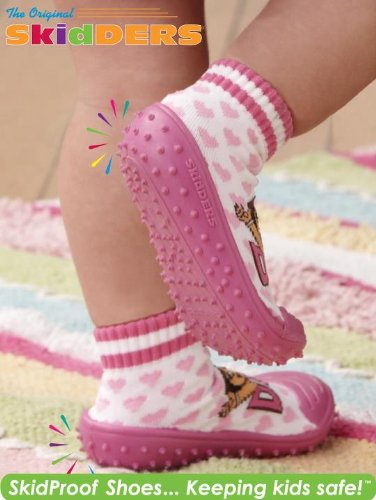 赤ちゃんにとって革新的な靴が開発されました。それは柔軟なウォーキングシューズであると同時に快適な靴下でもあります。滑りにくいラバーソールは、成長を制限することなく足を保護します。インソールには足を臭くなりにくくする抗菌加工をしています。アッパー素材はcotton/poly/spandexを採用しているため、通気性がよく呼吸を助け足を快適に保ちます(ただし、熱には弱いので取り扱いにご注意ください)また、このスキッダーズは伝統的な革底の靴よりも快適で、他の靴下靴よりも耐久性があることが試験されています。