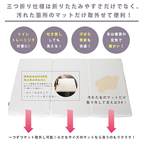 - 三つ折り仕様は折りたたみやすさだけでなく、 汚れた箇所のマットだけ取外せて便利!