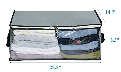 仕様: – 防塵の材質の掛け布団ストレージバッグには、外気を取り込み、その内のアイテムがフレッシュに、臭気を長時間の時間を使用することができます。 – 簡単に引き出しを2両端に組み込まれたハンドル。 – Underbedストレージオーガナイザーは通気性とフロント部にはクリアなので、分かるようにバッグを完全に処理して内容は、金型から保護します。 – 優れたベッド下のストレージを保存しておくだけ整理するためベッドの下やクローゼットや無限に参照して正しい。 – このリネンの保存容器保存する完璧な整理するための枕、シーツ、寝具、衣服、ティッシュも効果があり、ホリデーなどの装飾品、ギフトペーパー, Gift Wrap。