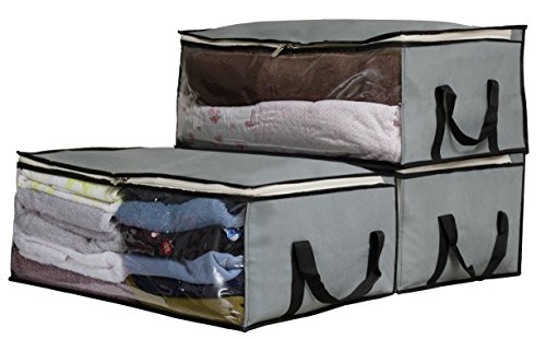 ストレージバッグオーガナイザーベッド下服ストレージコンテナの服、毛布、掛け布団inベッドルーム、クローゼット、3ピースセット 1 Section (3 Pack) グレー CB0077-GY