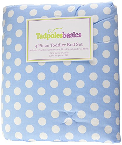 Tadpoles Dot and Stripe Toddler 4 Piece Bedding Set,Blue