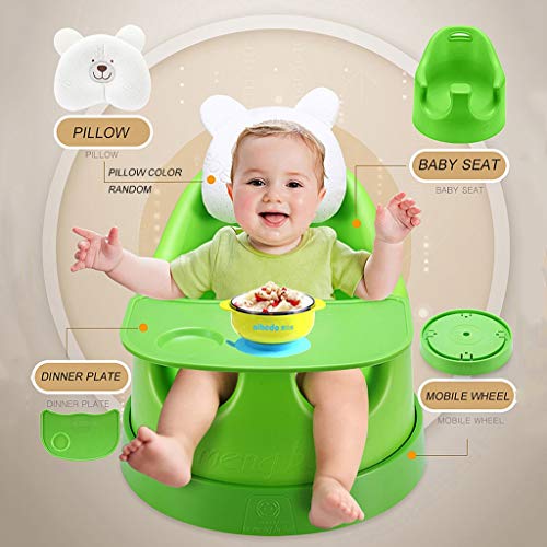テーブルのためのポータブルベビーシート、ユニバーサル車輪の幼児の餌椅子楽しいための小さなスツールかわいい回転車 (色 : Green)