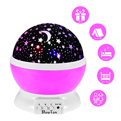 SlowTon LEDライト 美しい星空 星空投影 360度回転 ベビー お休み トイ (ピンク)