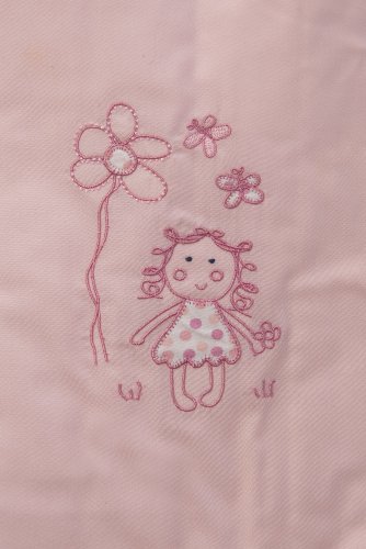 Premium quality sleep sack wearable blanket made from 100% cotton - ensuring your child has a peaceful and safe night's sleep;Beautiful baby sleep sack for girls made from pink cotton with rag doll embroidery, side zip for easy diaper changes;Baby sleeping bag standard weight approx. 2.5 Tog for all year round use and room temperatures between 59-70 F?;Size M: 6-18 months - suitable from 18-29 lbs/27-35 in, generous sizing for maximum value for money;Outer/Lining: 100% cotton, Padding: 100% soft polyester fleece, easy care - machine wash at 100 F? and low heat tumble dry