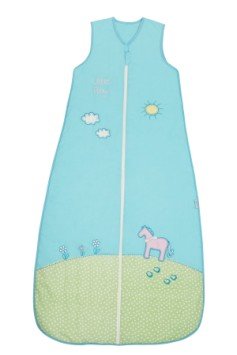 Premium quality sleep sack wearable blanket made from 100% cotton - ensuring your child has a peaceful and safe night's sleep, ideal for camping and sleep overs;Beautiful kids sleep sack for girls made from turquoise cotton with pony embroidery, great alternative to pink;Children sleeping bag standard weight approx. 2.5 Tog for all year round use and room temperatures between 59-70 F?;Size XL: 3-6 years - suitable from 40-46 in;Outer/Lining: 100% cotton, Padding: 100% soft polyester fleece, easy care - machine wash at 100 F? and low heat tumble dry