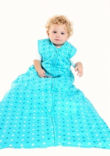 Jersey is the ideal cosy fabric for baby sleeping bags and our SIMPLY Slumbersacs are simple no frills kids sleeping bags made from 100% jersey cotton with lovely star prints at amazingly low prices;Summer sleeping bag approx. 1 tog - for warm weather and room temperatures 18-24 degrees;Slumbersac sleep sacks keep your child safe and at a constant temperature throughout the night, ideal for sleep overs;Size: 130 cm, suitable from approx. 3 to 6 years, middle zip with protective zip cover;Easy care - machine wash at 40 degrees and low heat tumble dry