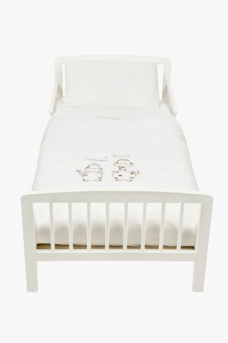 Cot bed bedding set for toddlers with with Cartoon Animal embroidery;Made of 100 percent cotton with lovely embroidery;Set includes 1 x Duvet Cover 120 x 150cm and 1 Pillow Case 40 x 60 cm;Machine washable and can be tumble dried;It fits beds up to 140 cm length by 70 cm width Cot bed size