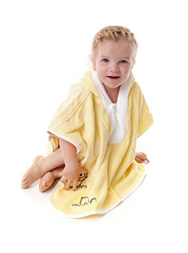 Towelling hooded bath poncho;Embroidered with giraffe and lion, gingham trim to coordinate with yellow towelling;Made from soft terry towelling 100 percent cotton;Machine washable at 60 degrees C and can be tumble dried;Suitable for children from 5 - 8 years