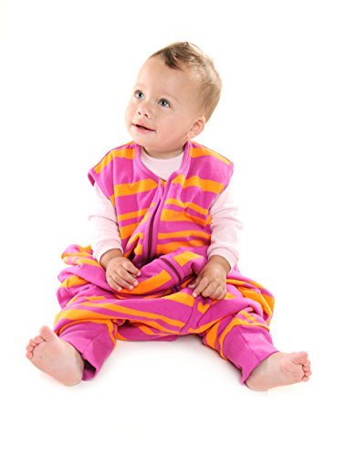 Unpadded baby sleeping bag with feet - light weight approx. 0.5 tog for those hot summer days and nights, ideal for room temperatures above 24 degrees. Lovely pink stripes design made from super soft jersey cotton.;Babies can crawl and walk around safely in this sleeping bag when awake and feet can be put inside the sleeping bag during sleep time.;Slumbersac sleeping bags with feet come in four sizes: Size 1: 12-18 months/80cm Size 2: 18-24 months/90cm Size 3: 24-36 months/100cm Size 4: 3-4 years/110cm, all sizes have a front centre zip opening from the top to the bottom;Outer/Lining: soft 100% Jersey Cotton, no padding;Machine wash at 40 degrees and low heat tumble dry.