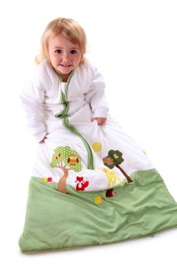 Winter baby Sleep Sack Wearable Blanket approx. 3.5 Tog with long sleeves made with soft 100% jersey cotton featuring forest animal embroidery on the front and animal print on the back. Suitable for room temperatures below 59 ?F . Arms are padded slightly less to allow for unrestricted arm movement. Arms are NOT removable.;This Schlummersack winter Sleep Sack Wearable Blanket comes in four sizes: