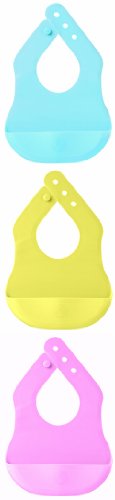 軽くてしなやかな天然シリコン製は肌にやさしく、赤ちゃんの肩と胸にぴったりフィットします。深い受け皿が食べこぼしをキャッチ、広がりすぎないように仕切りがついています。