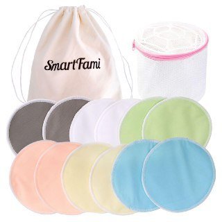Best Washable Organic Bamboo Nursing Pads with Laundry and Cloth Bag by SmartFami,Reusable Breast Pads,Ultra Soft,Waterproof,Leakproof Bra Pads,Absorbent,Hypoallergenic,Breastfeeding Pads by Smartfami