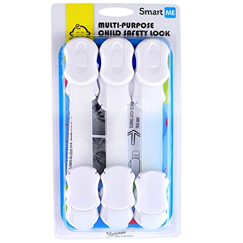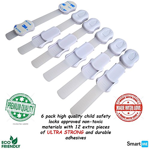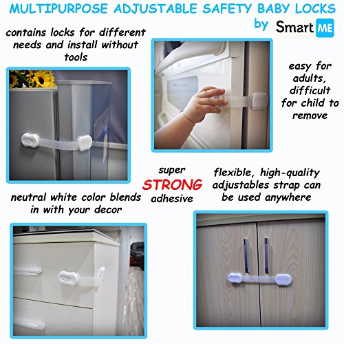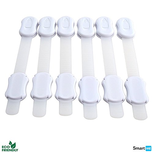 - ✔MULTI-PURPOSE: These SmartMe baby safety locks are ideal for securing entertainment centers, refrigerators, cabinets, microwaves, freezers, windows, dryers and more. Flexible strap works on both flat surfaces and around corners. It is easy to remove and won't leave marks on your cabinets or other surfaces.