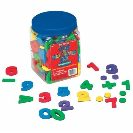 Set includes 110 durable soft foam magnets which are great for teaching number recognition, practicing counting skills, formulating equations and more! Comes complete with 70 multi-colored numerals (zero to nine) which are 1.75" tall.