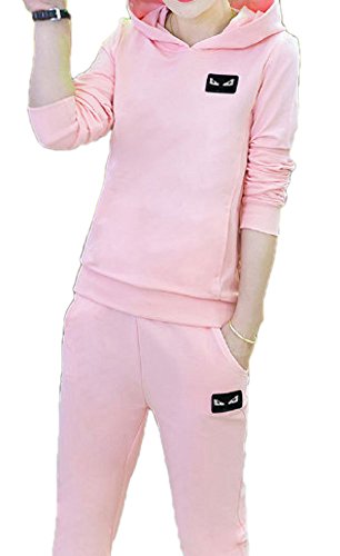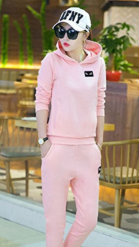 【Smile LaLa】 レディース ジャージ パーカー 上下 セット アップ 長袖 ルーム ウェア 部屋着 シンプル カジュアル フード付き (M, ピンク)