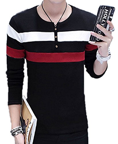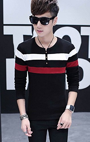 【Smile LaLa】 メンズ ボーダー Tシャツ カットソー 長袖 シンプル ブラック ホワイト ネイビー 春 秋 (XXL, ブラック)