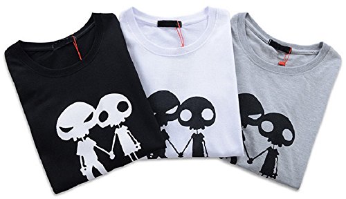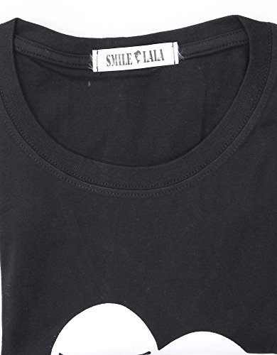 【Smile LaLa】 メンズ レディース シャツ Tシャツ 半袖 スカル ドクロ プリント シンプル 春 夏 秋 (XL, ブラック)