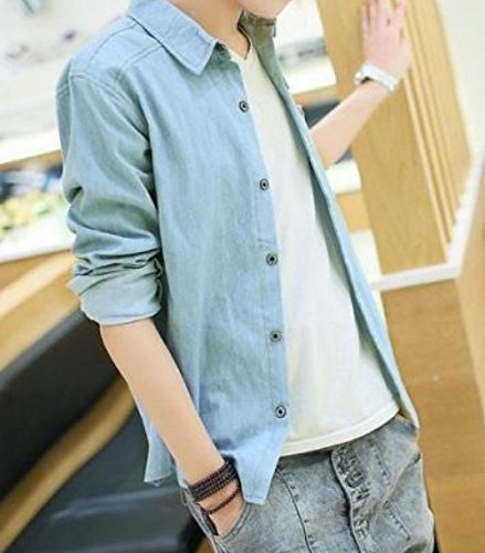 【Smile LaLa】 メンズ デニム シャツ 長袖 襟付き アメカジ カジュアル ファッション 男性 用 春服 夏服 秋服 コットンブルー ディープブルー (M, ライトブルー)