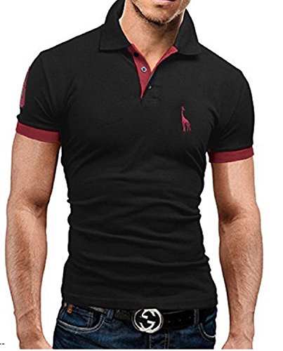 【Smile LaLa】 メンズ ポロシャツ 半袖 トップス 無地 シンプル カジュアル スポーツ ゴルフ ウェア ワンポイント ロゴ 夏服 (XL, ブラック)