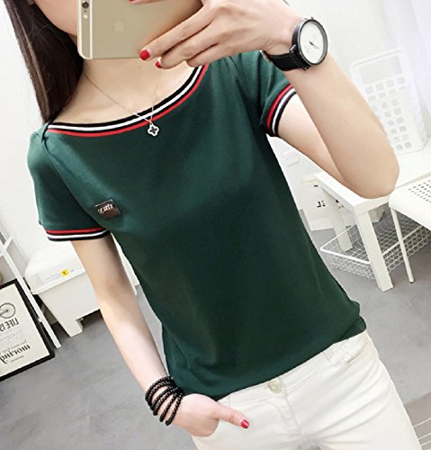 【Smile LaLa】 レディース トップス Tシャツ カットソー ボーダー 半袖 シンプル カジュアル ライン 無地 春服 夏服 (2XL, グリーン)