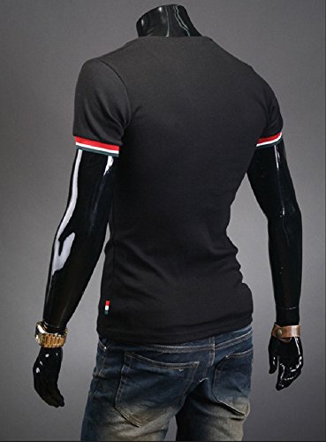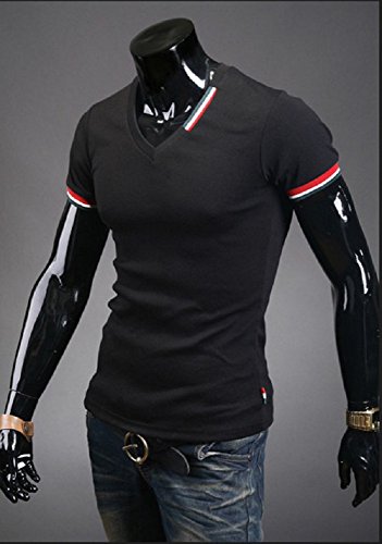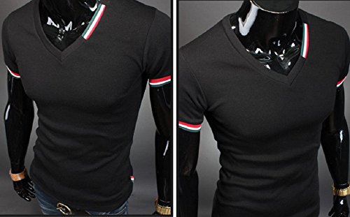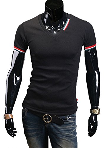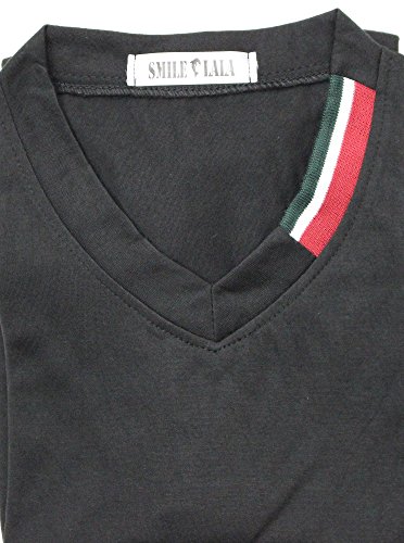 【Smile LaLa】 メンズ 半袖 Vネック Tシャツ シンプル ワンポイント カットソー 無地 カジュアル 春 夏 秋 (3XL, ブラック)