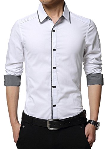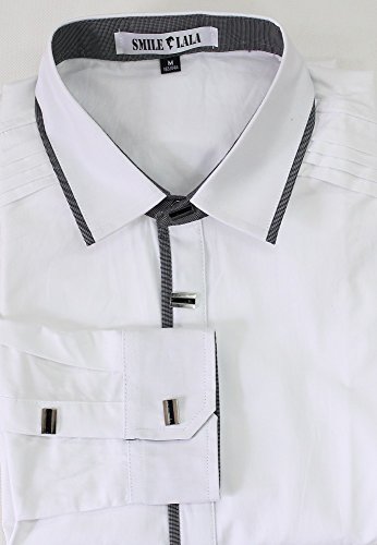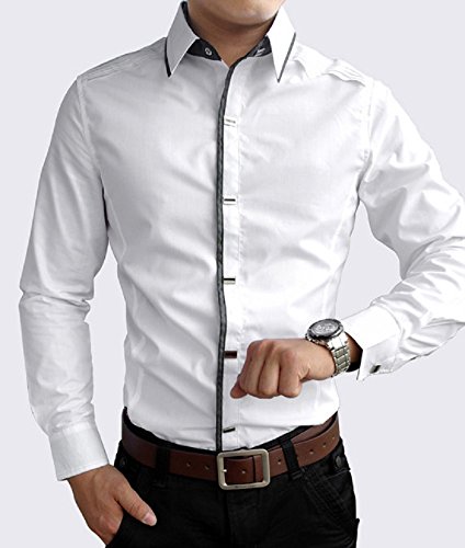 【Smile LaLa】 メンズ シャツ カッターシャツ ワイシャツ ビジネス フォーマル シンプル 長袖 男性 襟 付き スリム 春 夏 秋 冬 (3XL, ホワイト)