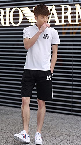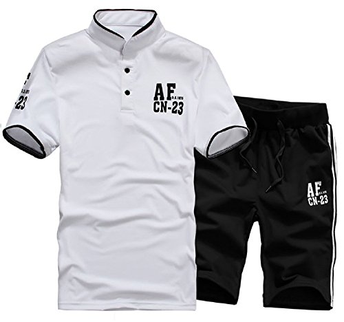 【Smile LaLa】 メンズ スウェット ジャージ 半袖 上下 セット アップ スポーツ ルーム ジム ウェア トレーニング カジュアル (XL, ホワイト)
