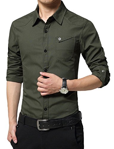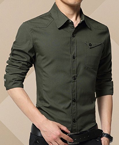 【Smile LaLa】 メンズ シャツ カッターシャツ ワイシャツ ビジネス シンプル 長袖 襟 付き 男性 用 無地 春 夏 秋 冬 (XL, グリーン)