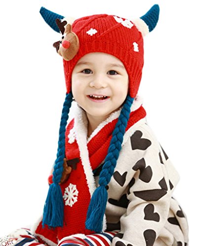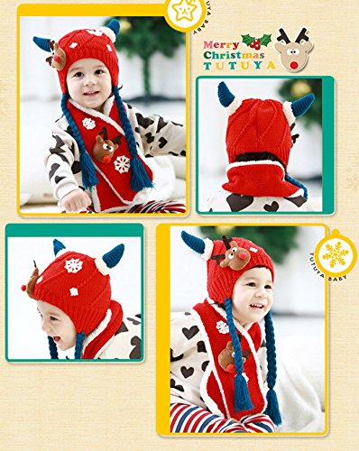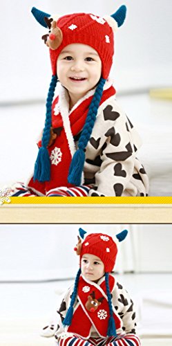 (スマイル ワキキ)Smile YKK クリスマス ニット キャップ キッズ マフラー 2点セット 子供 防寒 帽子 耳あて 赤ちゃん ベビー 鹿 レッド