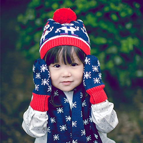 (スマイル ワキキ)Smile YKK クリスマス ベビー ニットキャップ マフラー 手袋 3点 セット 子供 防寒帽 キッズ 女の子 ポンポン S