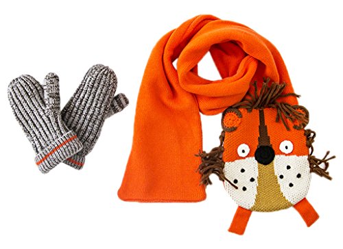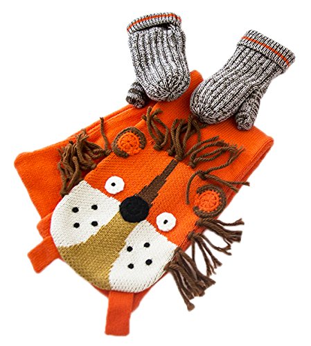 (スマイル ワキキ)Smile YKK アニマル風 子供用 ニット マフラー 手袋 2点セット キッズ 女の子 グローブ 防寒 男の子 アウター M