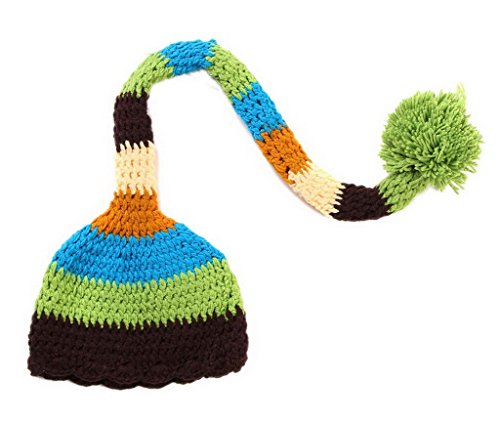 (スマイル ワキキ)Smile YKK 赤ちゃん ベビー着ぐるみ ニット帽子 服 記念写真 コスチューム 寝相アート 新生児 出産祝い ボーダー柄 ボンボン付き ブラックとブルー