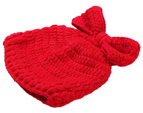 (スマイル ワキキ)Smile YKK 赤ちゃん ベビー着ぐるみ ニット帽子 服 記念写真 コスチューム 寝相アート 新生児 出産祝い 蝶結び付き 無地 レッド