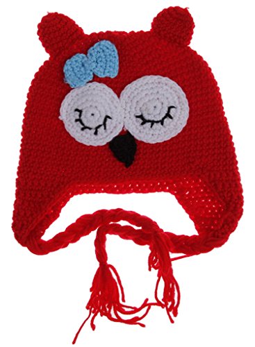 (スマイル ワキキ)Smile YKK ベビー帽子 ニット耳当て キャップ 編み物 赤ちゃん ハット 帽子 保温 記念写真 フクロウ型 秋冬 レッド