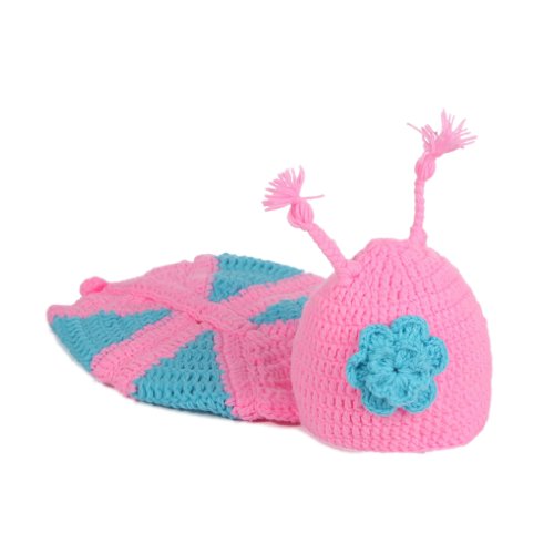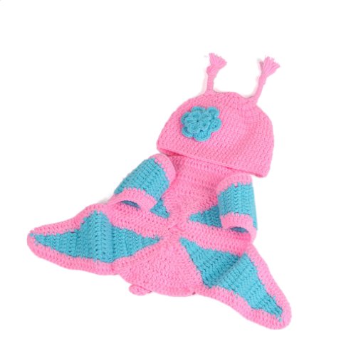 (スマイル ワキキ)Smile YKK 赤ちゃん ベビー帽子 服 ニット 着ぐるみ コスチューム 寝相アート 新生児 出産祝い 記念写真 バタフライ ブルー