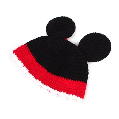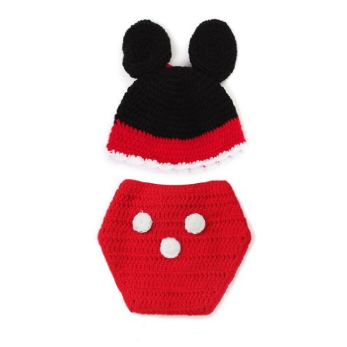 (スマイル ワキキ)Smile YKK 赤ちゃん ベビー 着ぐるみ ニット帽子 服 コスチューム 寝相アート 新生児 記念写真 出産祝いミッキーマウス型 帽子 おむつカバーセット ブラック レッド