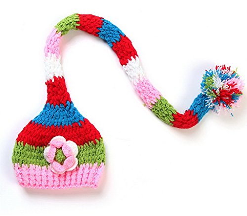 (スマイル ワキキ)Smile YKK 赤ちゃん ベビー 着ぐるみ ニット帽子 服 コスチューム 寝相アート 新生児 記念写真 出産祝い ボーダー柄 ボンボン付きのニット帽子花柄 カラフル