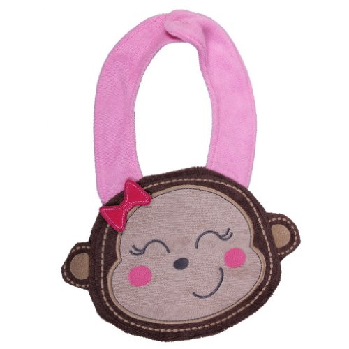 (スマイル ワキキ)Smile YKK 赤ちゃん ベビービブ よだれかけ キャラクターエプロン 食事用 新生児 スタイコットン 防水 動物シリーズ 猿 ピンク