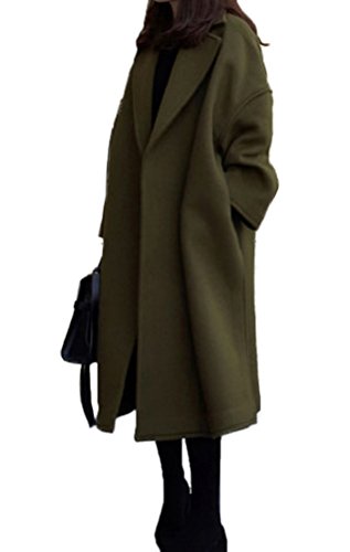 【Smile LaLa】 レディース ボリューム アウター チェスター ロング コート 無地 シンプル エレガント 大人 シック 長袖 裏起毛 (L)