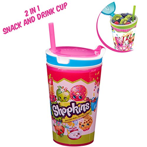 Snackeez Shopkins 2 in 1 Snack and Drink Cup Cup, Colors and Designs Vary) (Pink)