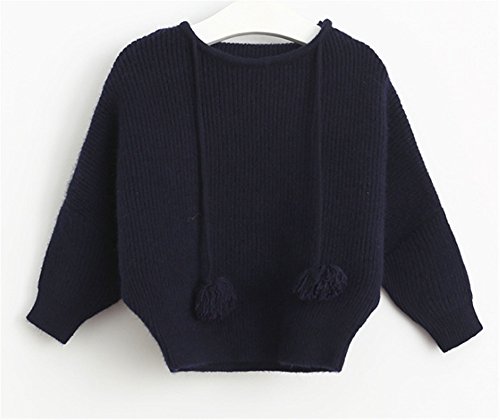 SnoLyni (JP) キッズセーター ベビージャンパー カットソー ニットメリヤス編み上げ アウター 羽織り キッズ 服 子供 春秋 女の子 ガールズ カジュアル 通学 (130cm, ネイビー)